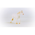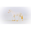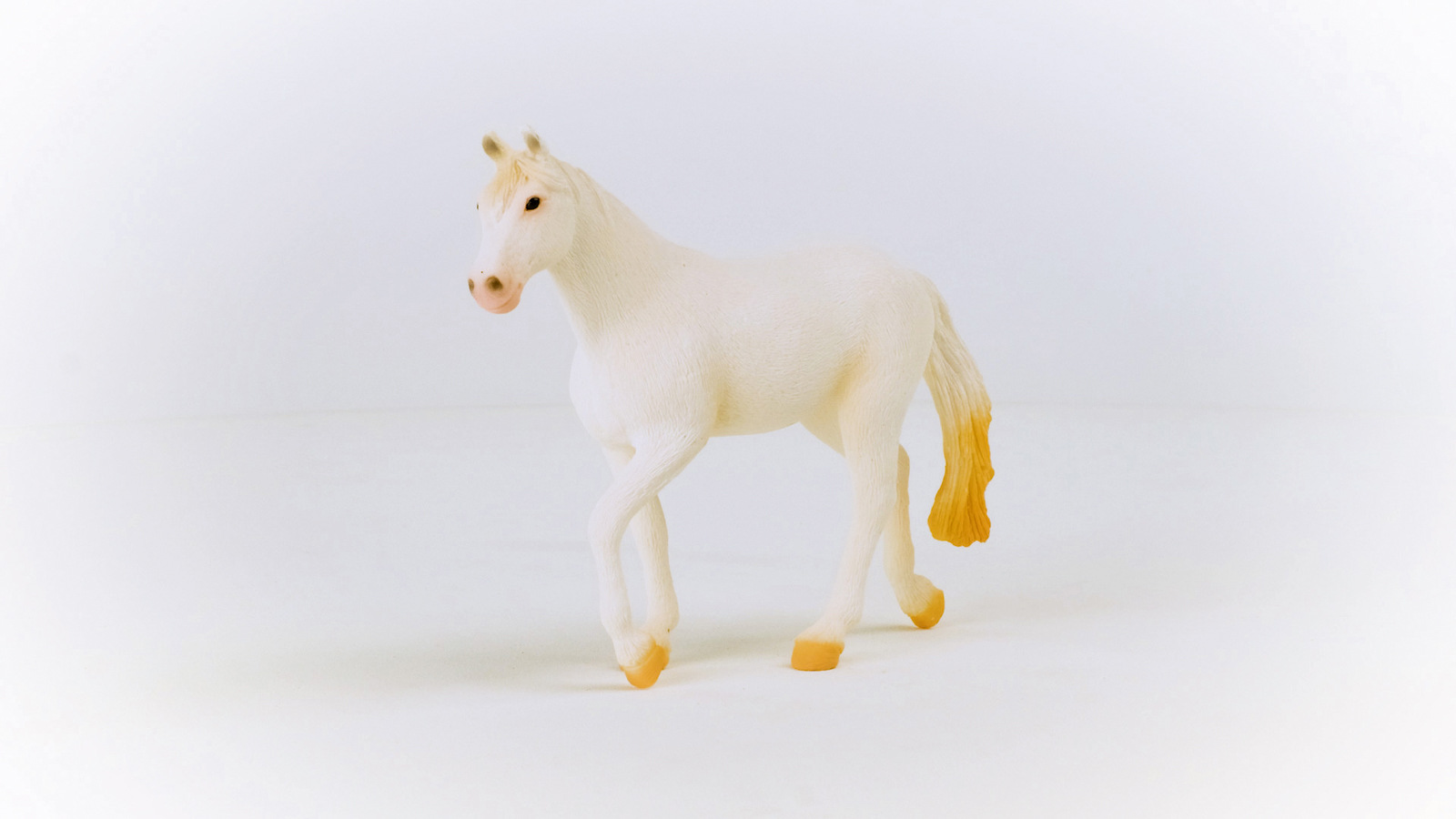 Krásná arabská klisna ladně pokládá svá jemná kopyta a pozorně se rozhlíží po pastvině. Přes čelo jí padá hustý pramen žlutobílé hřívy. Vypadá skvěle! Jestlipak sama ví, jak je krásná. Jen kopyta a chřípí s velkými nozdrami jsou tmavé. Na přední straně chřípí má růžovou skvrnu. Zbytek její srsti je zářivě bílý. Pozorně zastříhá ušima. Kam se podělo její arabské hříbě (prodává se samostatně)? Měla by se jít podívat. Rozměry figurky: 10 x 13 x 4,5 cm. Věk: 5+